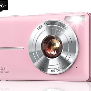 Digital Camera for Kids, 1080P FHD Camera, 44MP Point and Shoot Digital Camera for Pictures with 32GB Card, 16X Zoom, Compact Small Vintage Camera Gifts for Teens Kids Boys Girls(Pink)